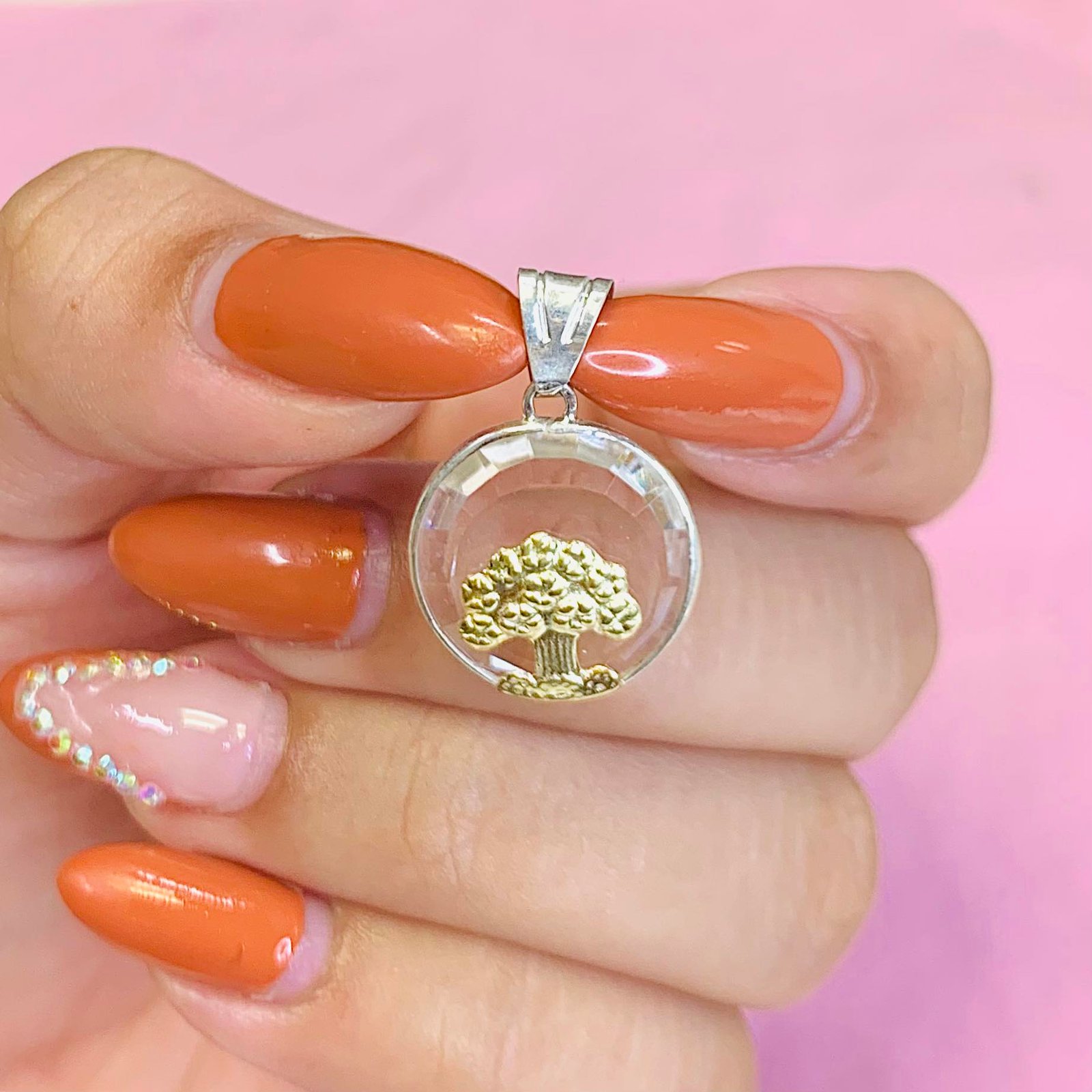 Dije arbol de la Vida en cristal 25mm de Plata y Oro