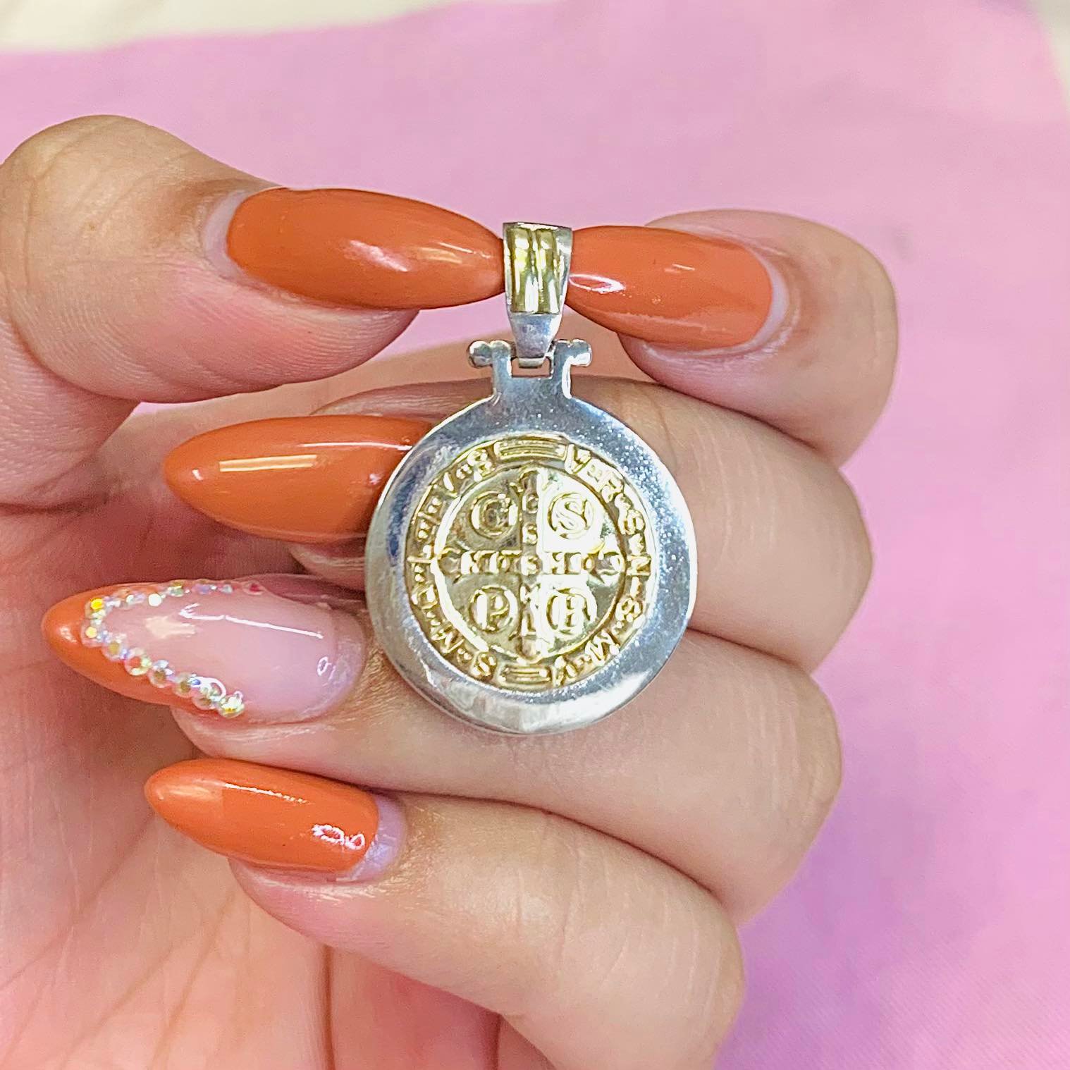 Dije San Benito 34mm de Plata y Oro