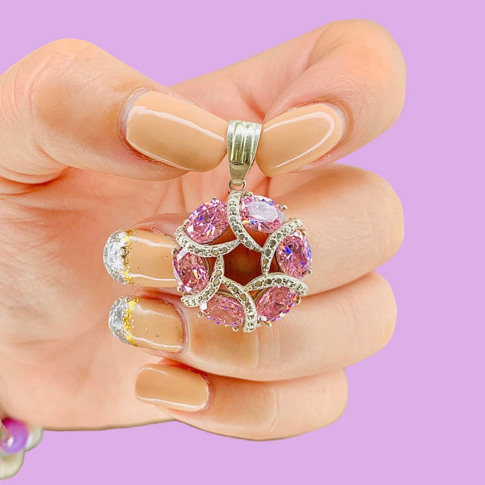 Dije bianca con cubic rosa 35mm de Plata y Oro