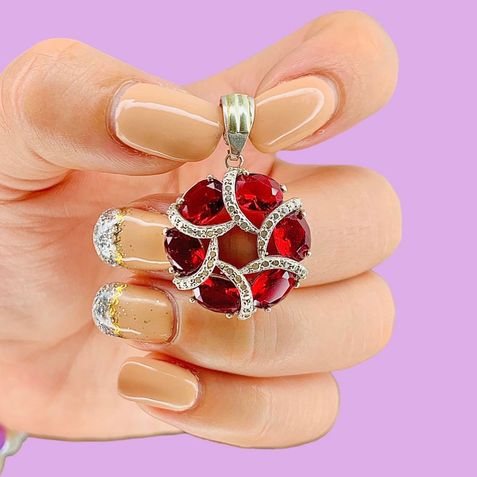 Dije bianca con cubic rubi 35mm de Plata y Oro