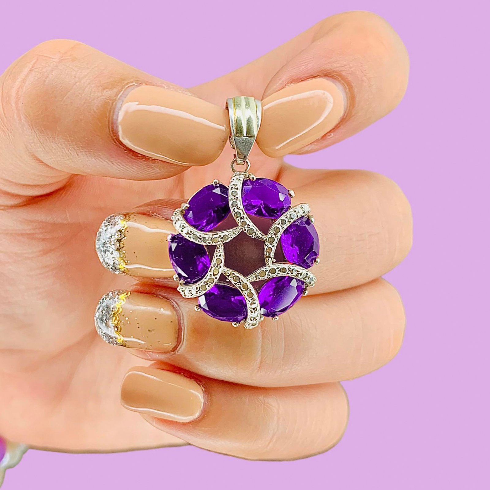 Dije Bianca con cubic Amatista 35mm de Plata y Oro