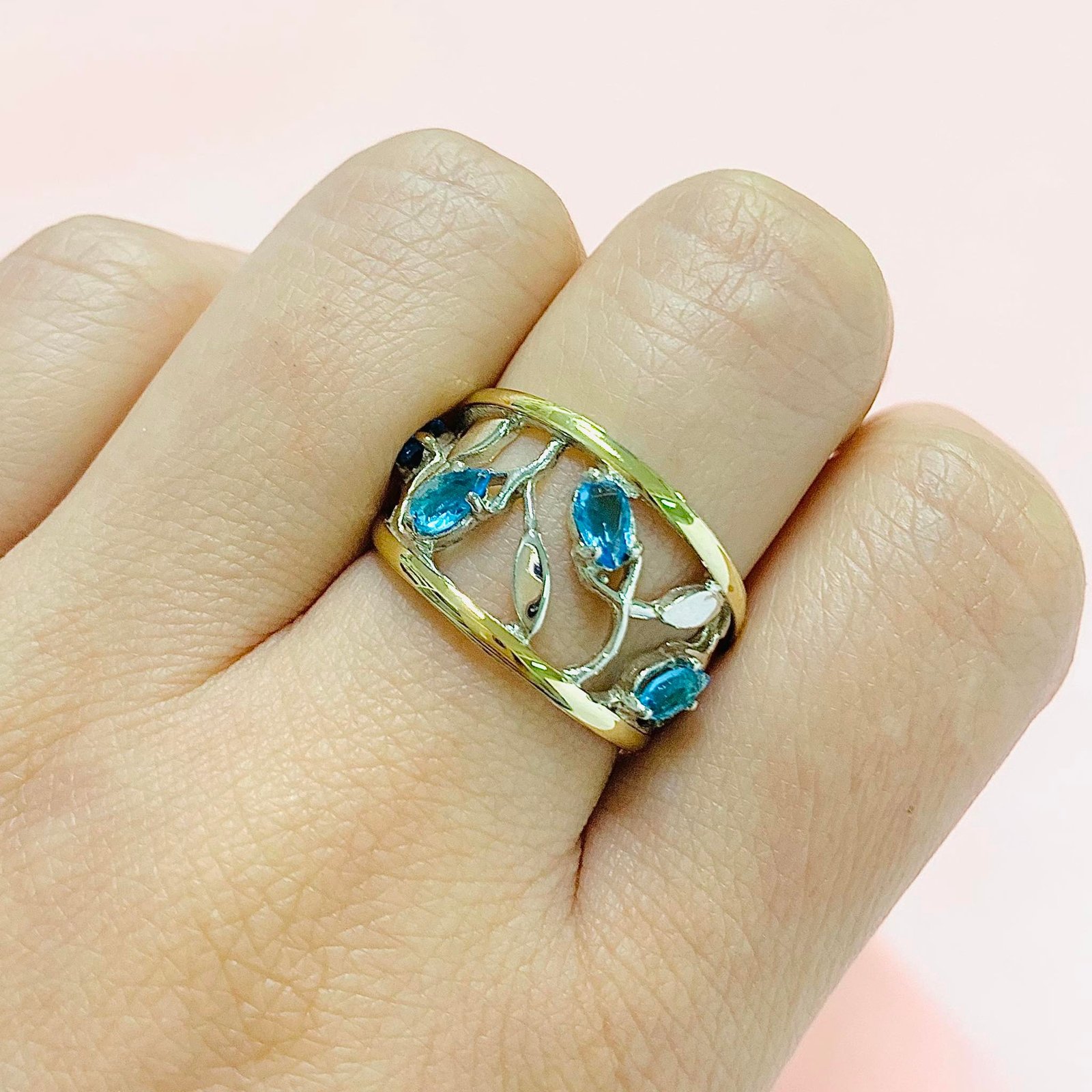 Artículo: AP 014-11Anillo de hojas con cubic Agua marina