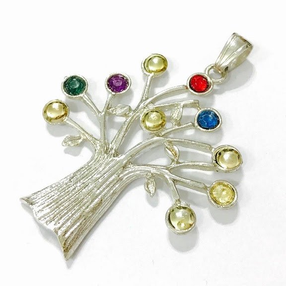 Dije arbol de la vida con piedras multicolor 64mm de Plata y Oro
