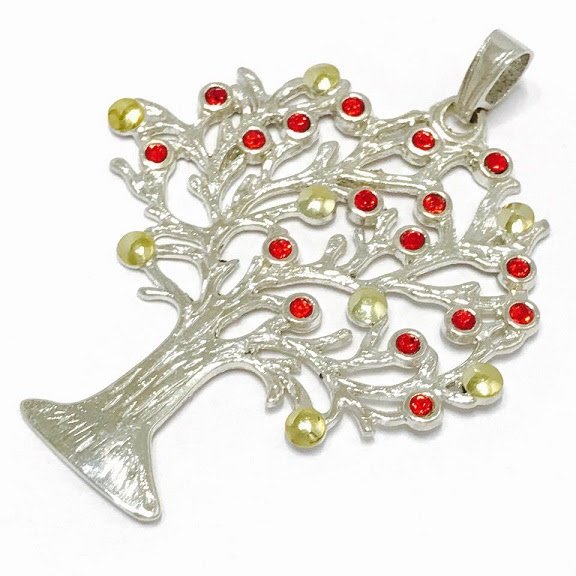 Dije Arbol de la vida con piedras color rubi 70mm Plata y Oro