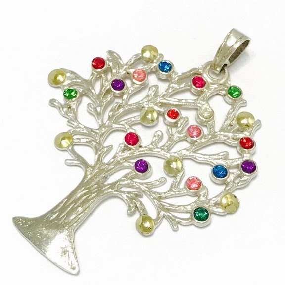 » Dije Arbol de la vida con piedras multicolor 70mm Plata y Oro