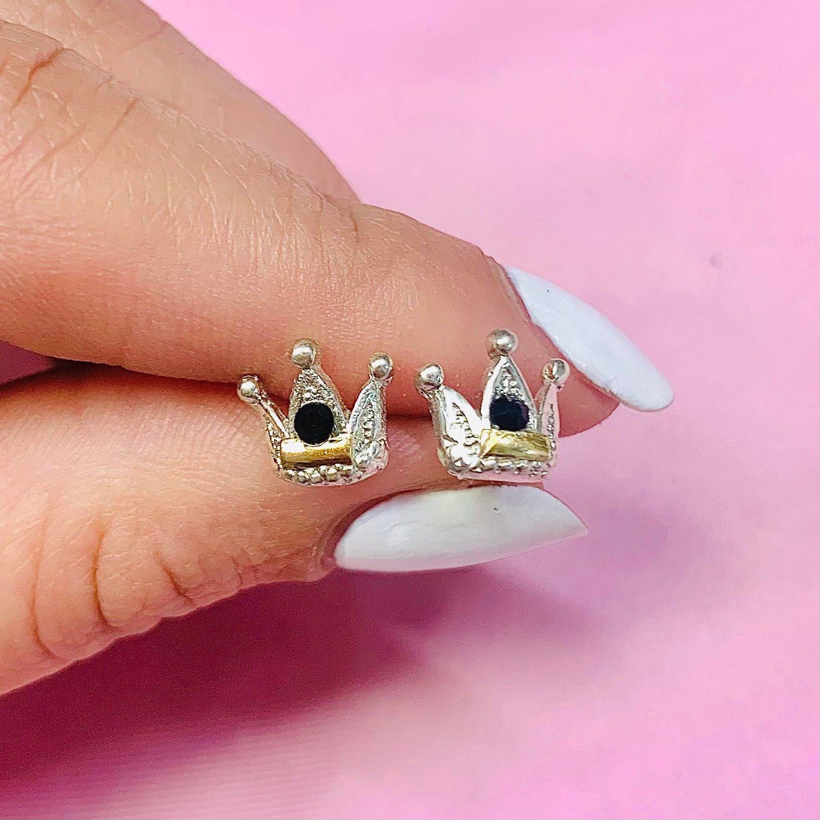 Arito corona con cubic negro de Plata Y Oro