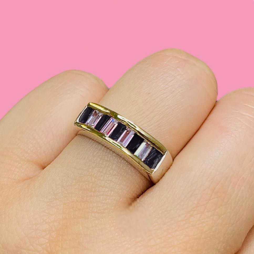 Anillo baguette mediano con cubic negro-blanco de Plata y Oro