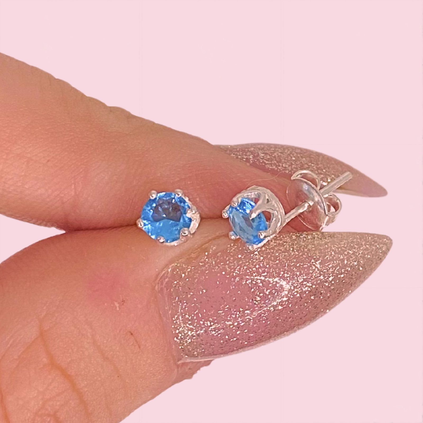 Aros con cubic 4.5mm AguaMarina de Plata 925