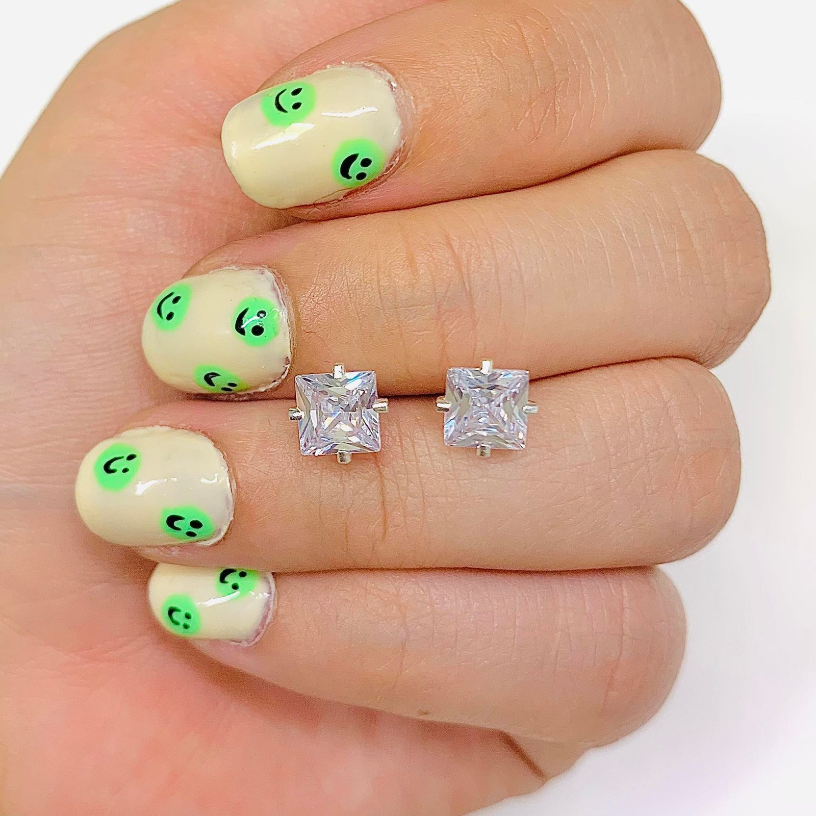 Aros con cubic Blanco cuadrado 6x6 Plata 925