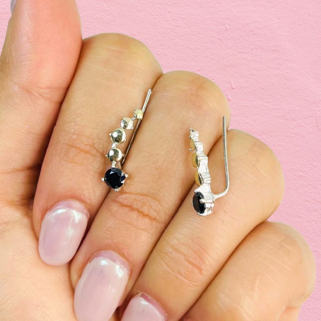Artículo: AR 077-1Aros Trepadores de Plata y Oro con cubic Negro
