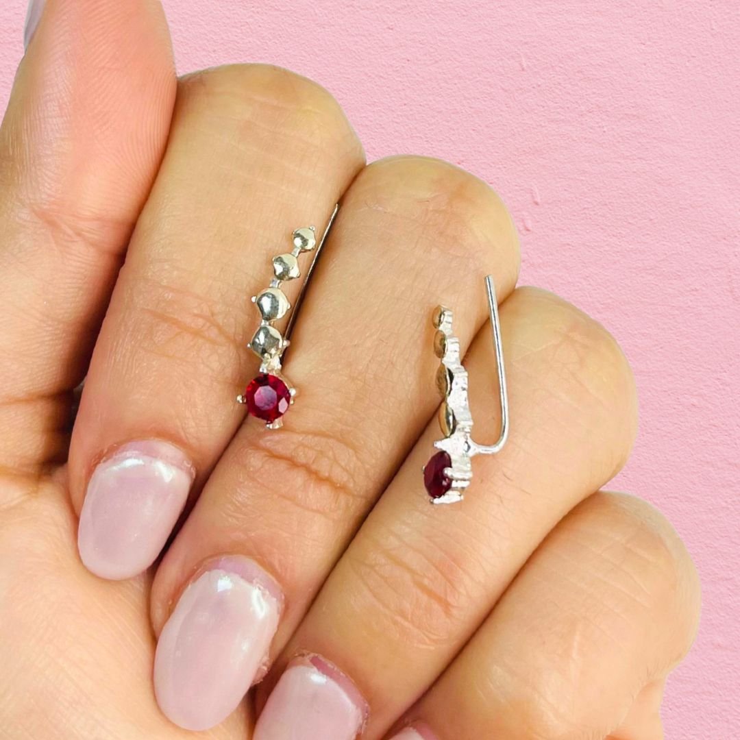 Aros Trepadores de Plata y Oro con cubic Rubi