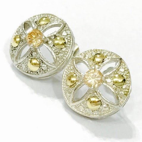 Aros imperial con cubic ambar de Plata y Oro