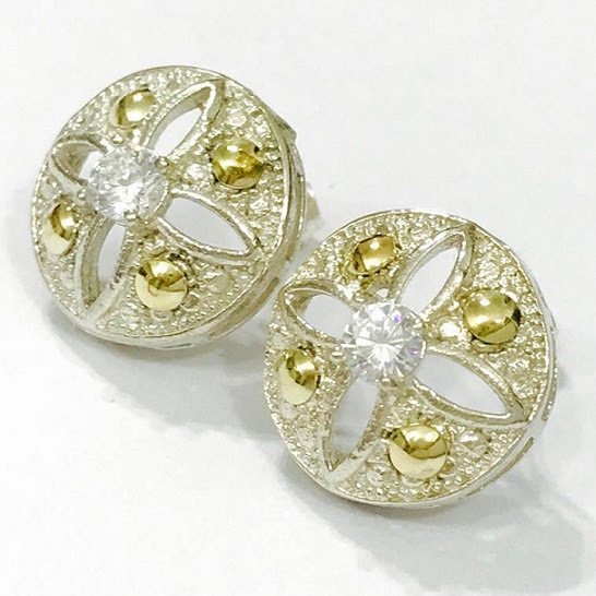 Aros imperial con cubic blanco de Plata y Oro