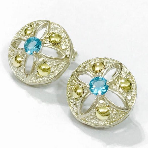 Aros imperial con cubic agua marina de Plata y Oro