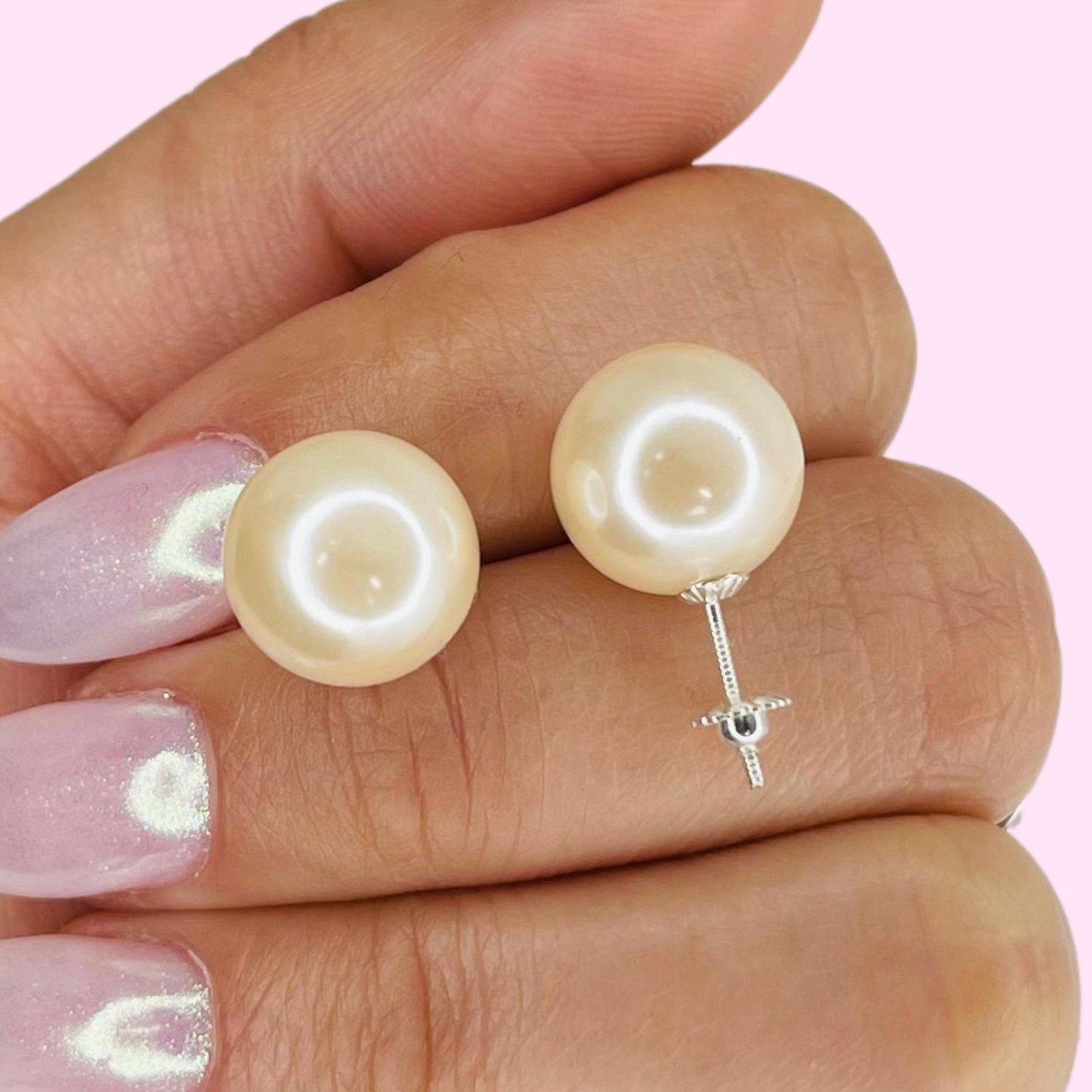 Aros de perla 12mm con Rosca Plata 925