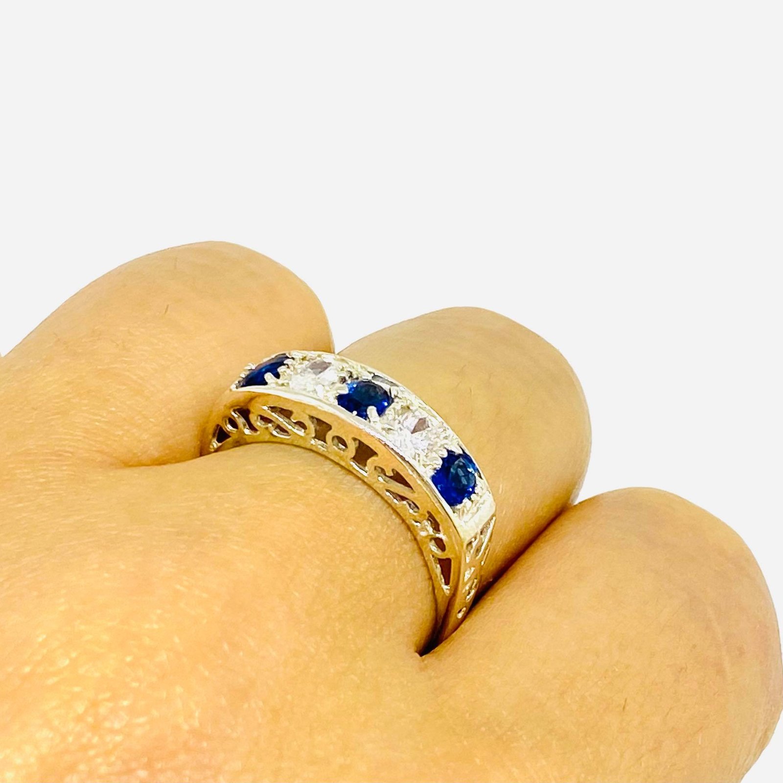 Anillo Magda medio sinfin Calado Zafiro-blanco Plata 925