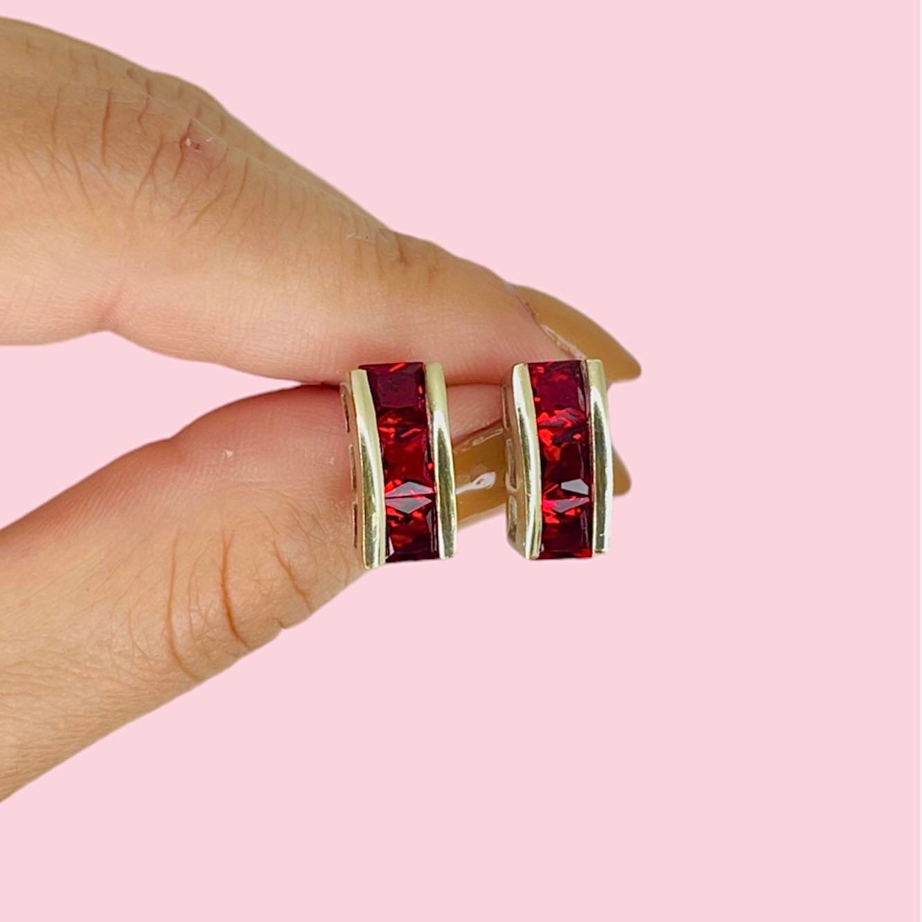 Aros con cubic Rojo cuadrado Plata y Oro