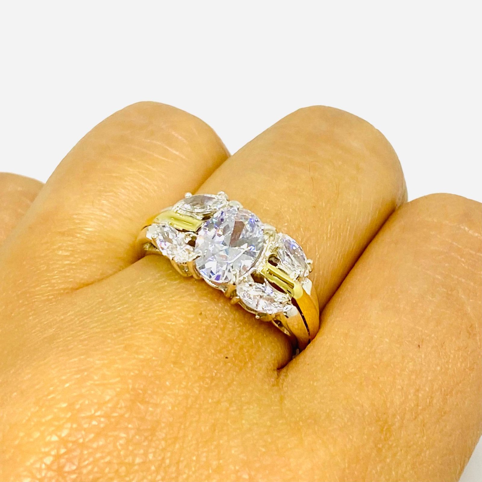 Anillo Leyla con Piedra Blanca de Plata y Oro