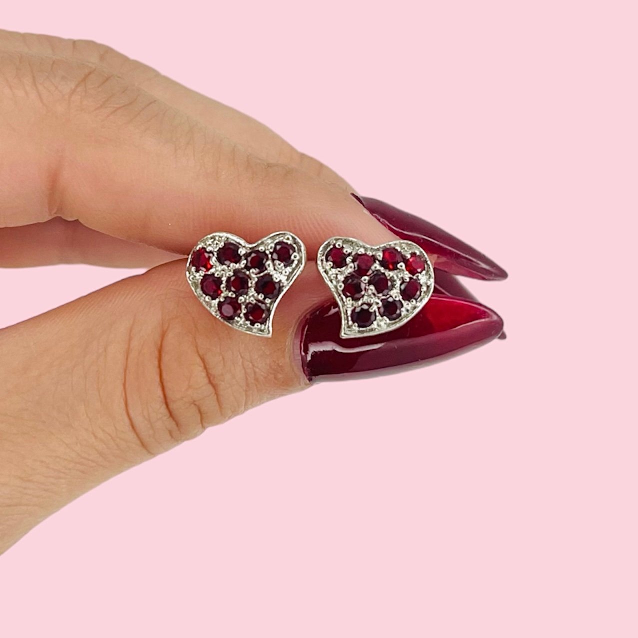 Aros Rosca frutilita de corazon con cubic rubi de Plata 925