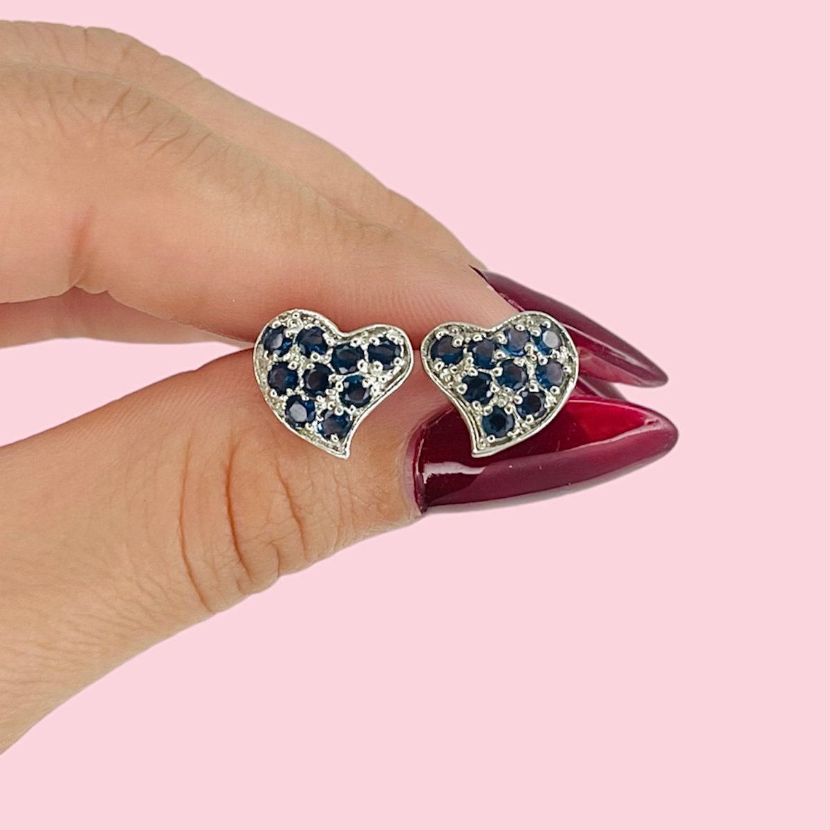 Aros Rosca frutilita de corazon con cubic zafiro de Plata 925