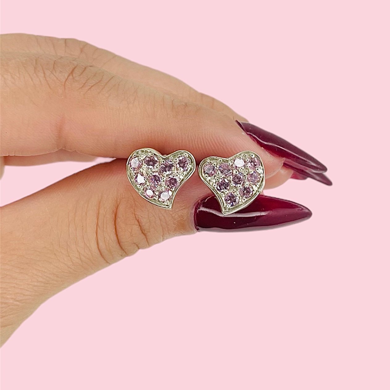 Aros Rosca frutilita de corazon con cubic rosa de Plata 925