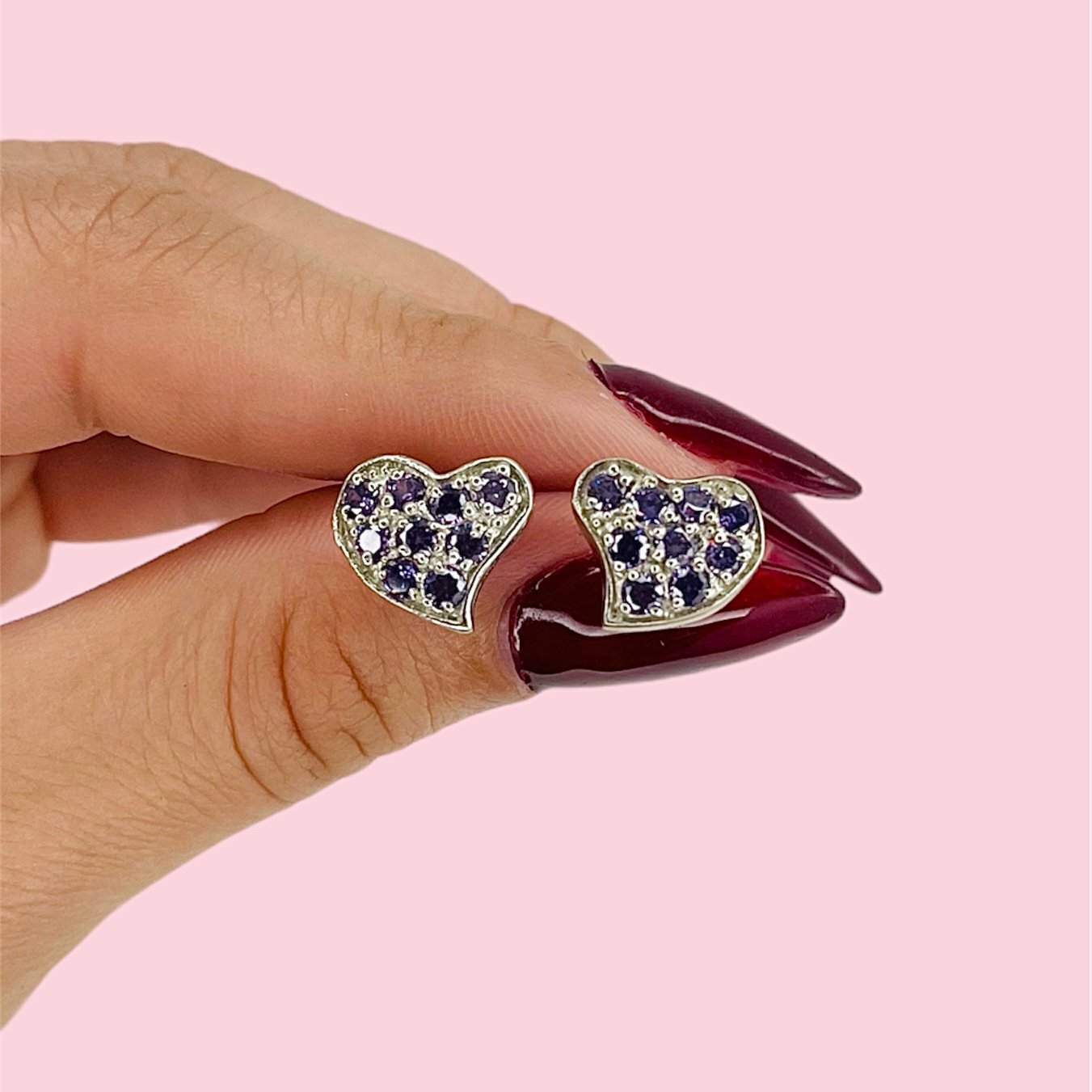 Artículo: AR 308-9Aros Rosca frutilita de corazon con cubic amatista