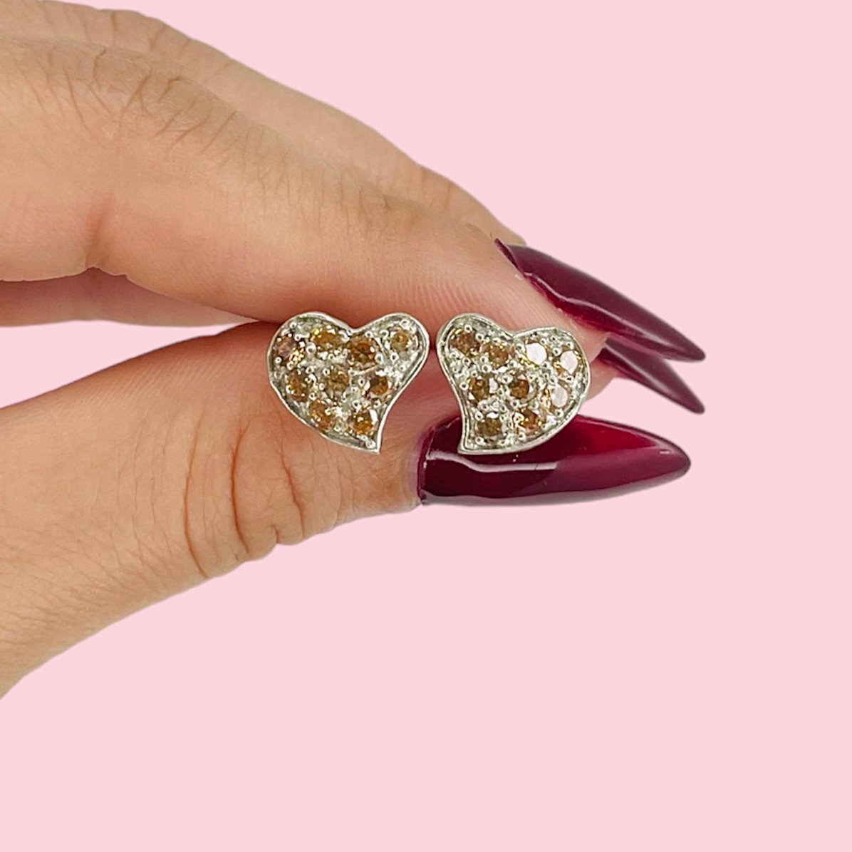 Aros Rosca frutilita de corazon con cubic ambar de Plata 925