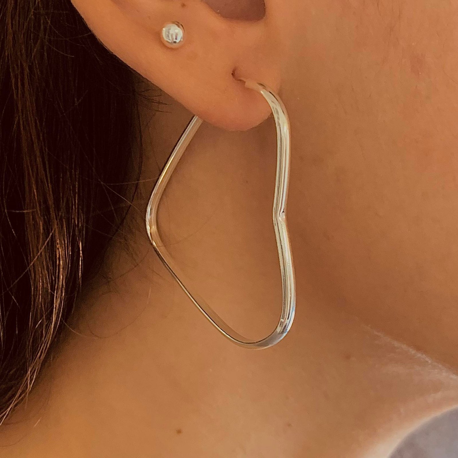 Aros corazon 45mm x 45mm corte media caña de plata 925