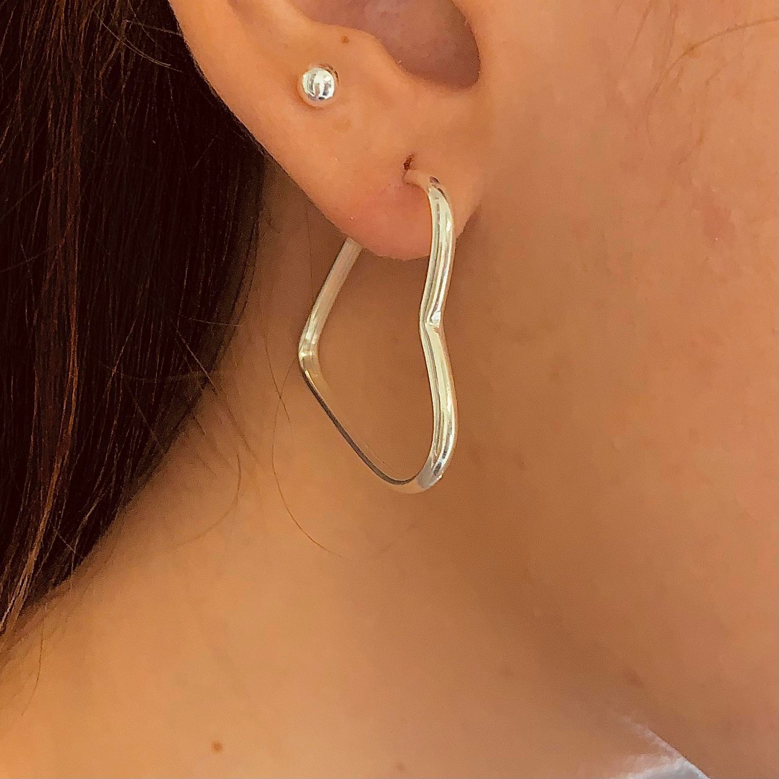 Aros corazon 30mm x 30mm corte media caña grueso de plata 925