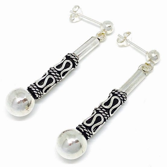 Aros bali colgante con bolita 45mm de plata