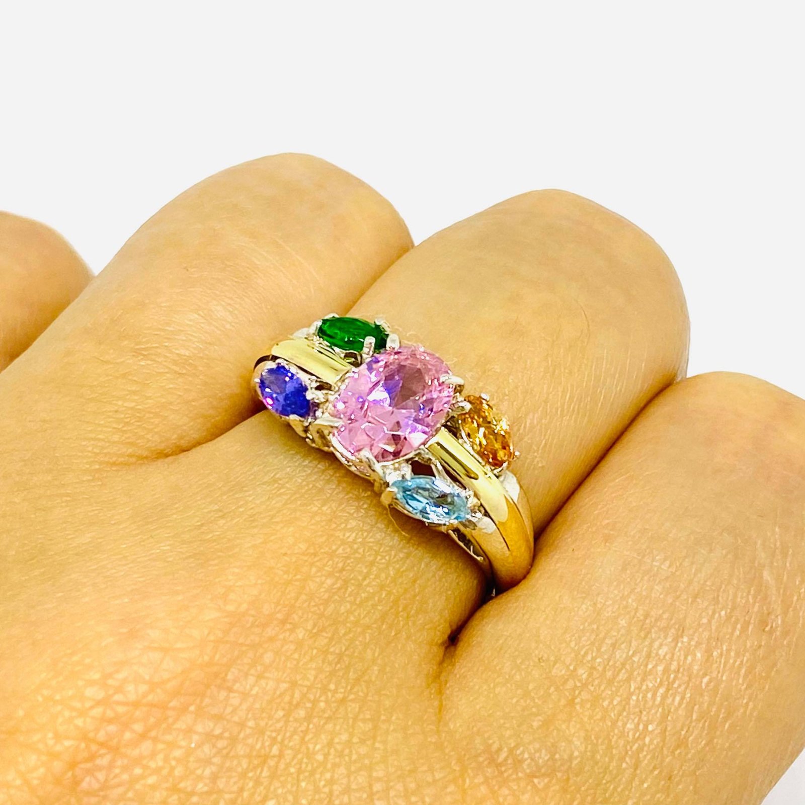 Anillo Leyla con Piedra Multicolor de Plata y Oro