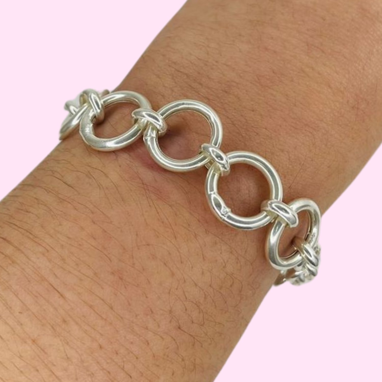 Pulsera rolo N2 con argollas de 14mm plata 925
