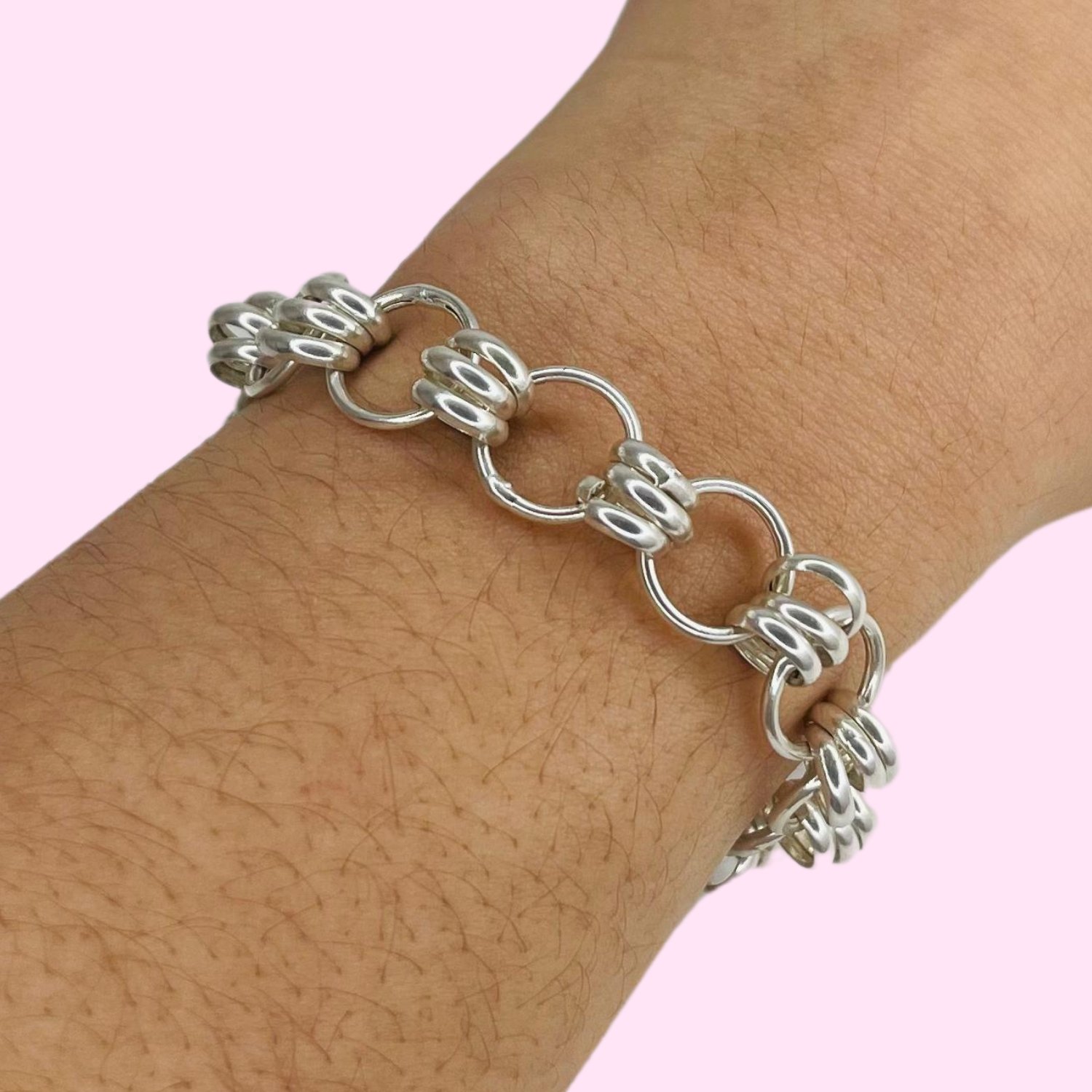 Pulsera con argollas de 12mm agarrados con 3 eslabones de 8mm plata 925