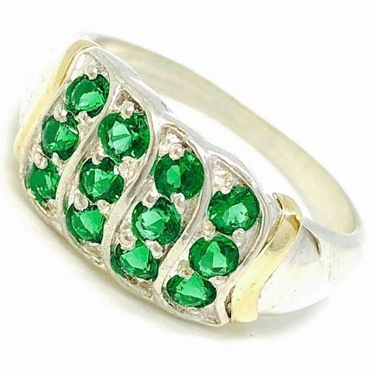 Anillo Danisa cintas con cubic esmeralda Plata y Oro