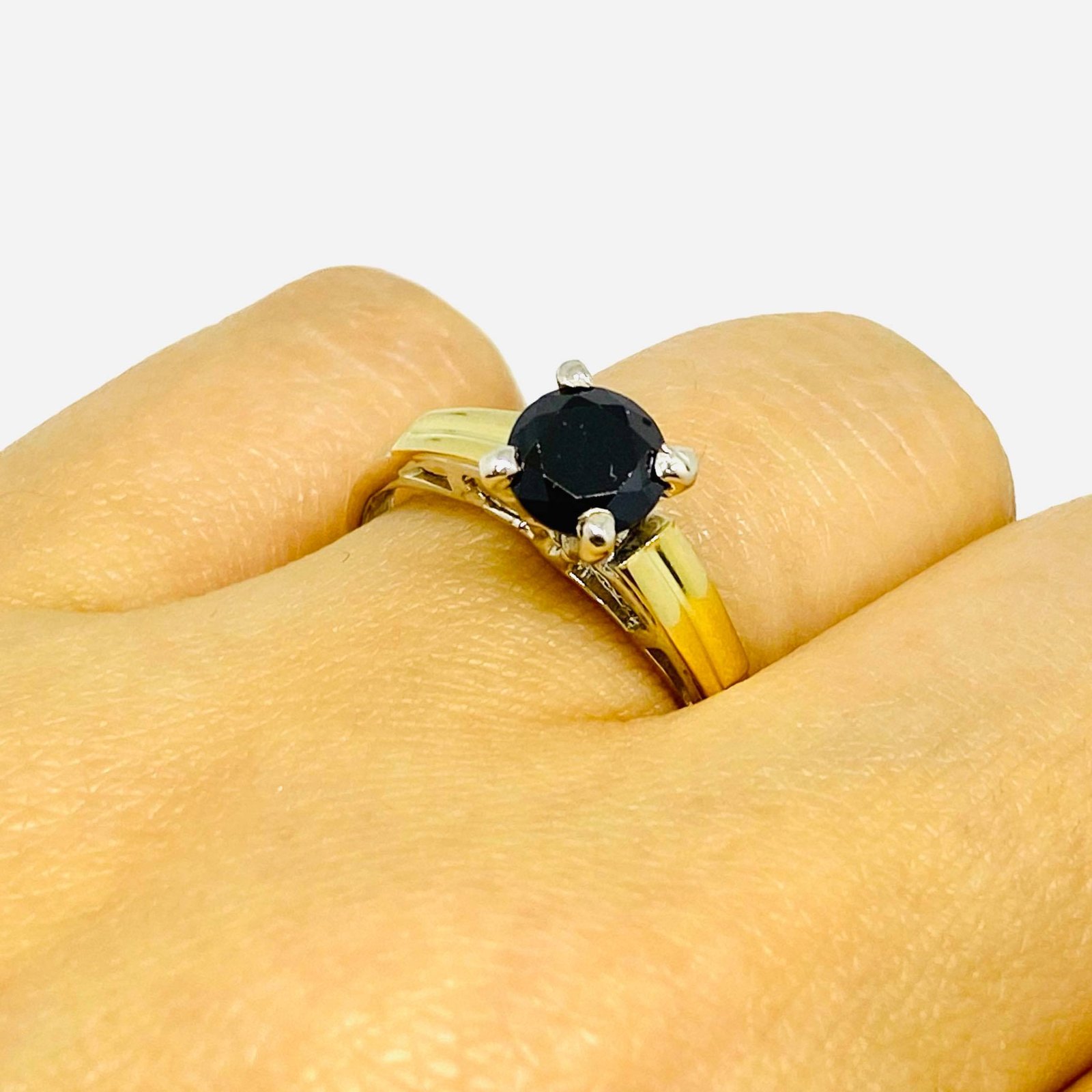 Anillo Charlotte con cubic negro Plata y Oro
