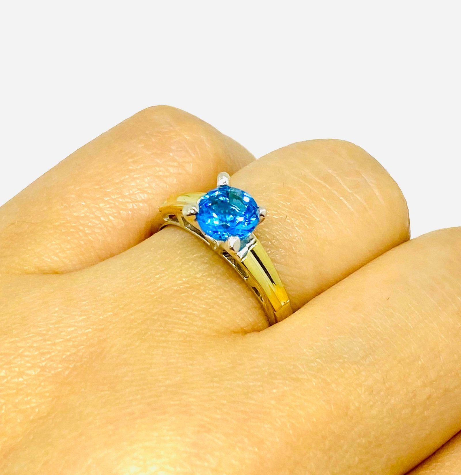 Anillo Charlotte con cubic aguamarina Plata y Oro