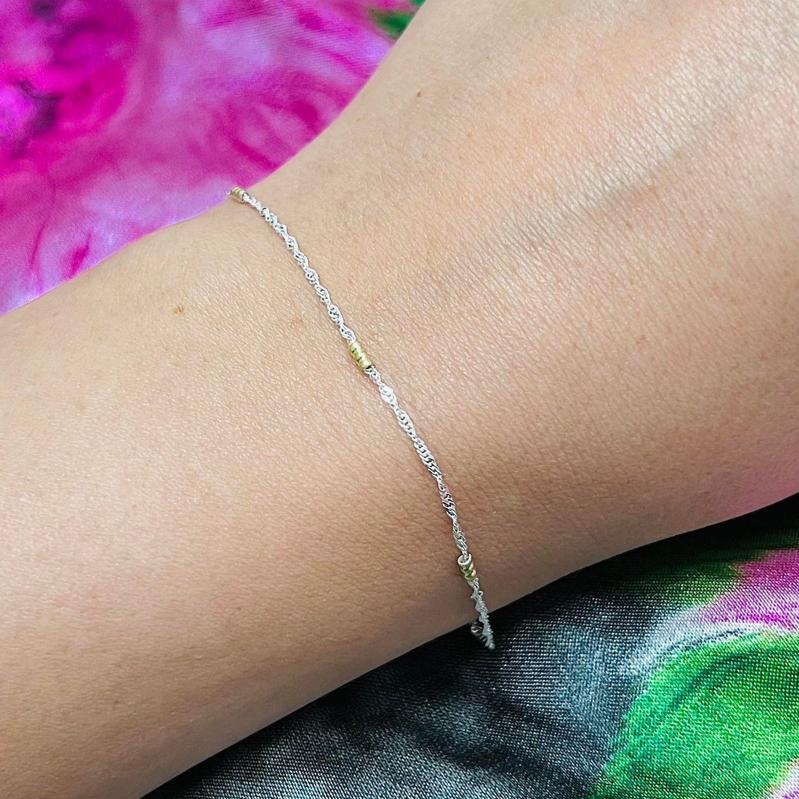 Artículo: PS 098Pulsera Singapur Fina con apliques de Oro 18k
