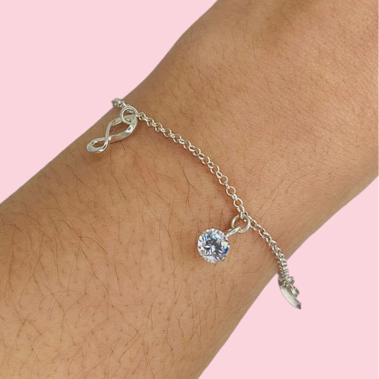 Pulsera infinito de plata con cubic