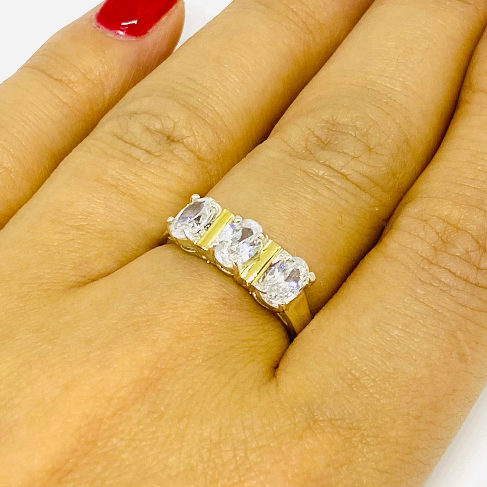 » Anillo Trio con cubic Ovalado Blanco Plata y Oro