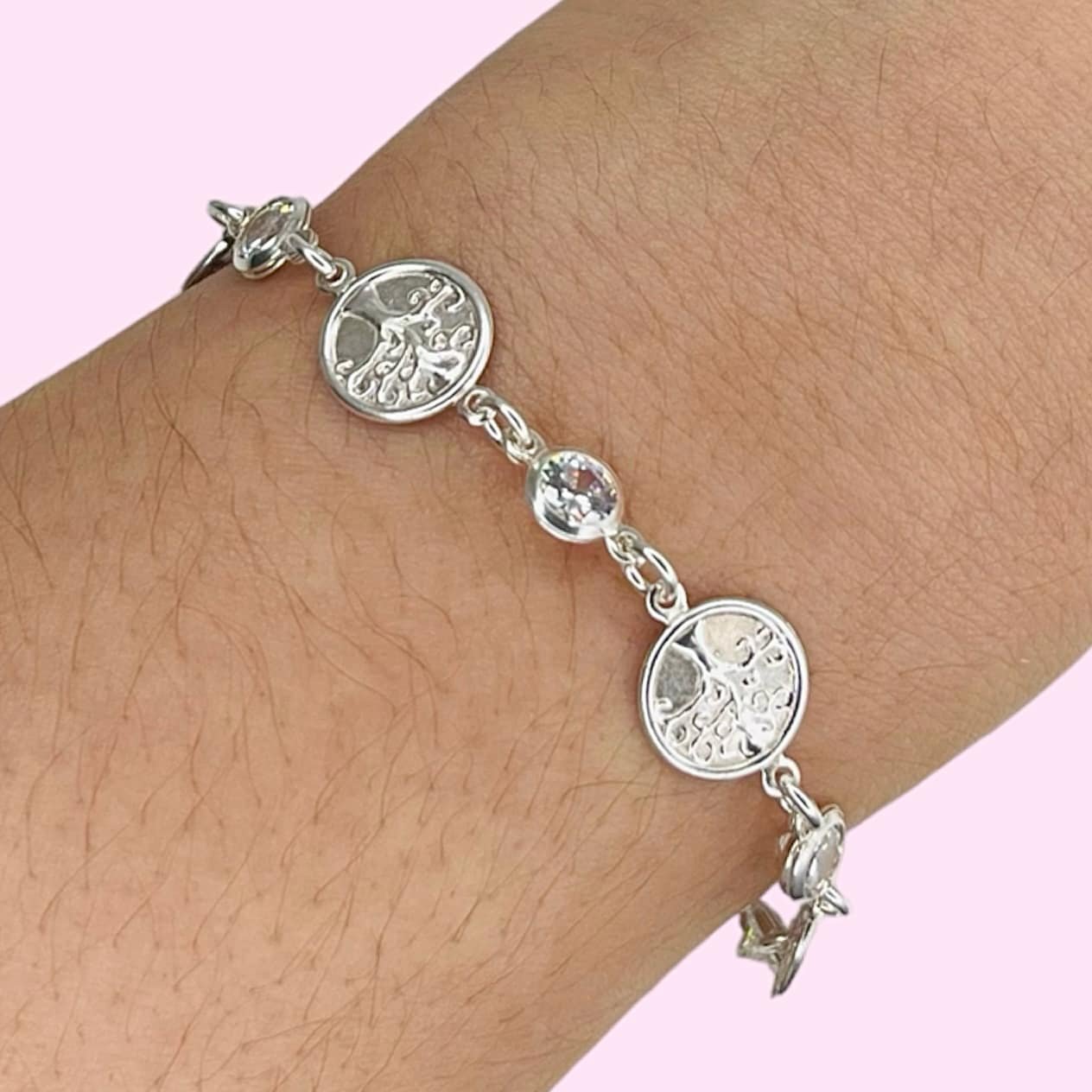 Pulsera arbol de la vida de plata con cubic