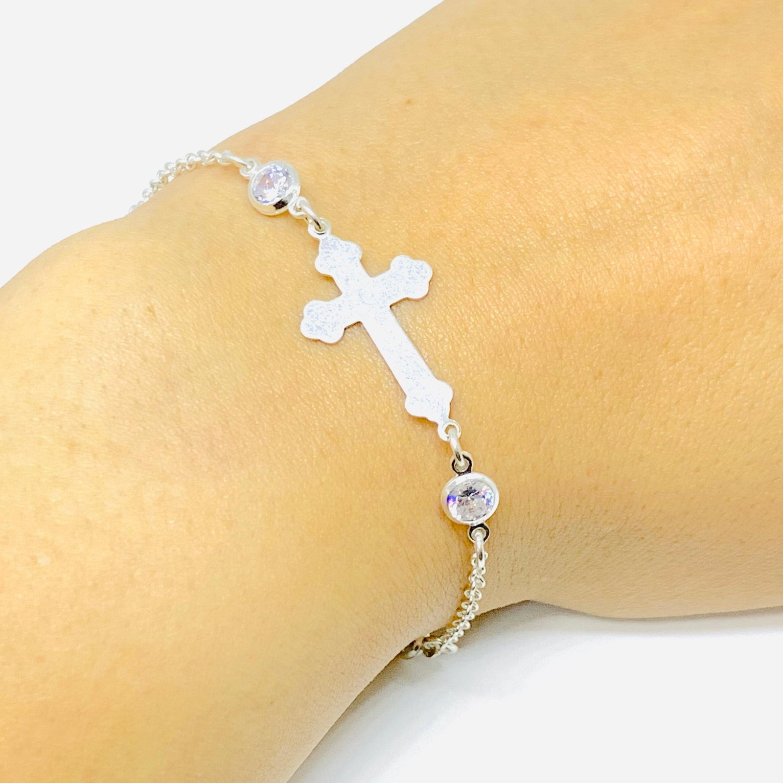 Pulsera con Chapita Cruz de plata Italiana