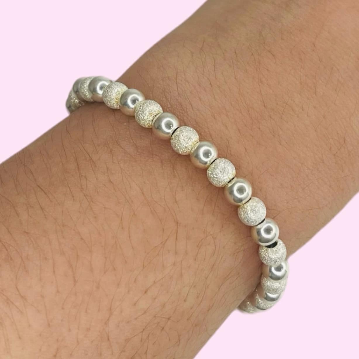 Pulsera bolitas arenadas y lisas 5mm de plata 925