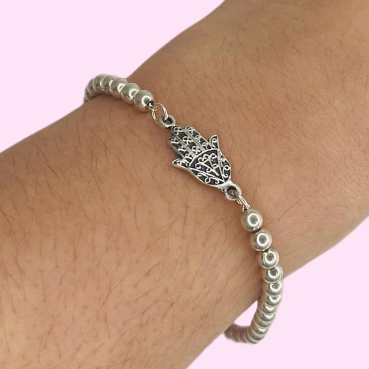 Pulsera bolitas con mano de fatima bali de plata 925