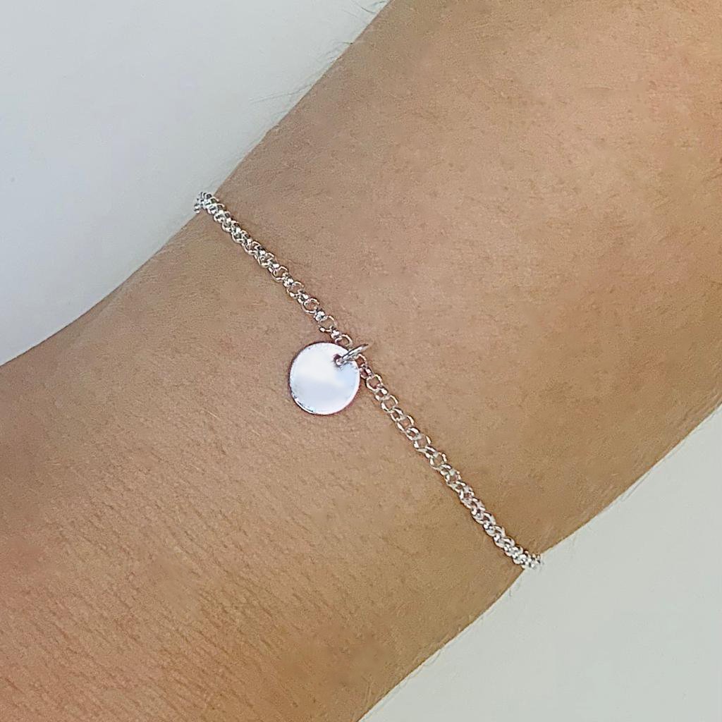 Pulsera Rolito con dije circulo espejado laminado Plata 925