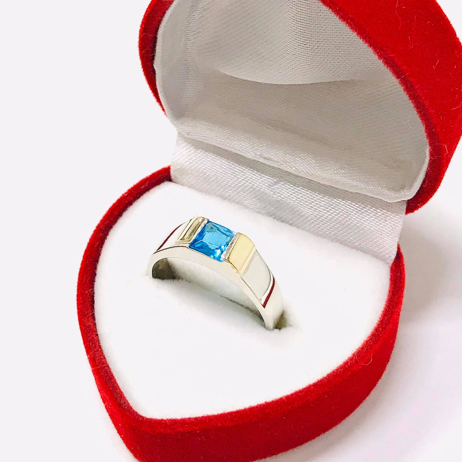 Anillo sello con piedra cuadrada agua unisex Plata y Oro