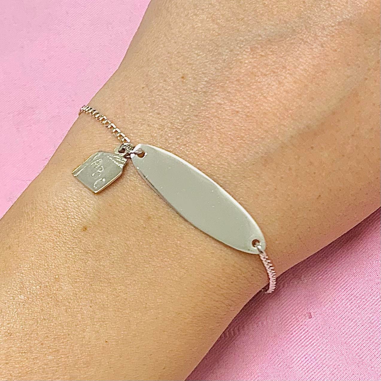 Pulsera Chapita grabado y Dije Libro ABC Plata 925