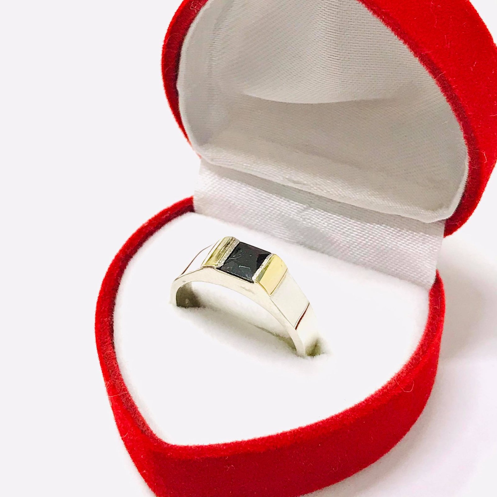 Anillo sello con piedra cuadrada negra unisex Plata y Oro