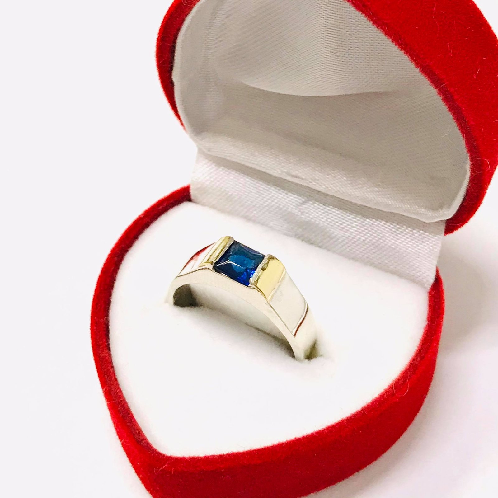 Anillo sello con piedra cuadrada zafiro unisex Plata y Oro