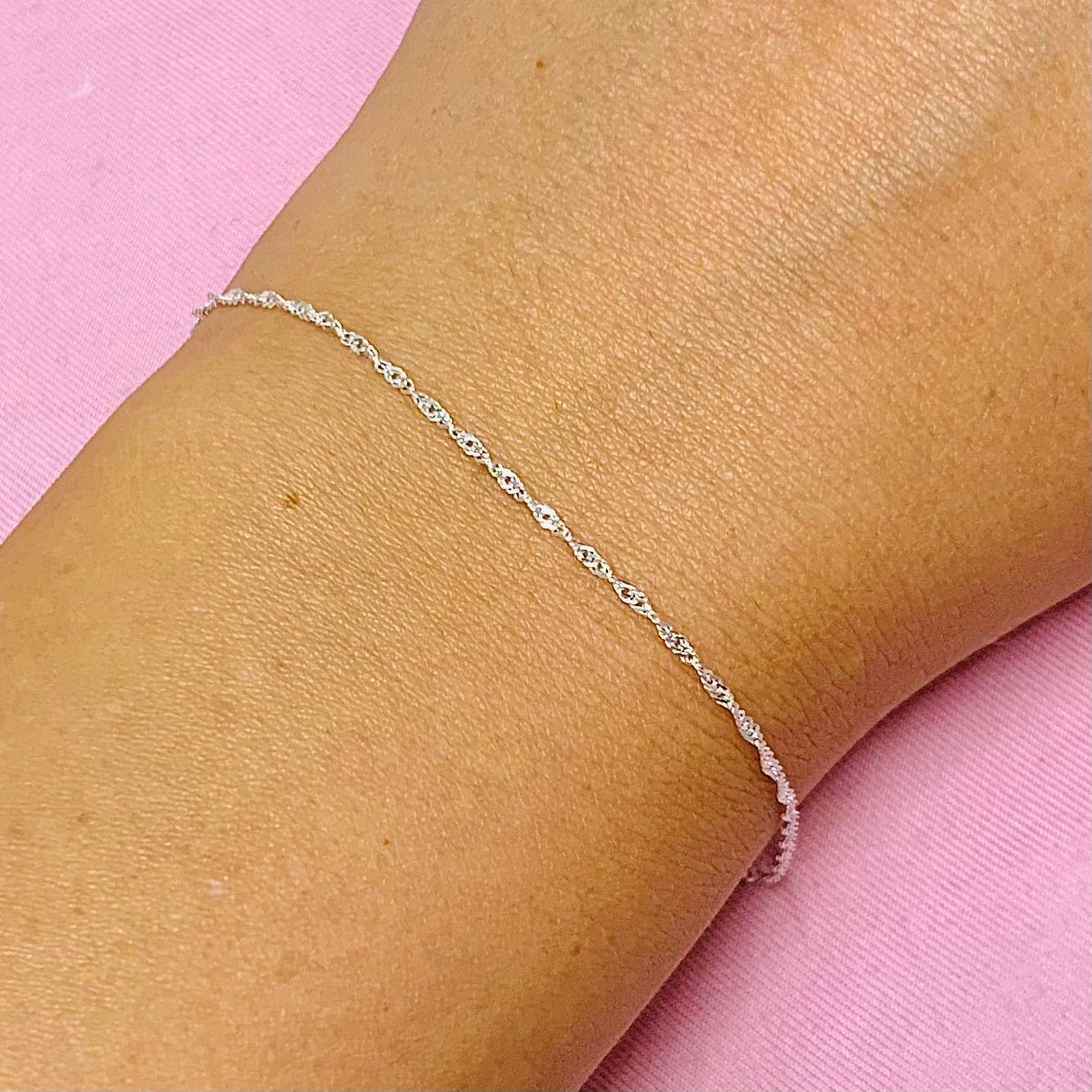 Pulsera Singapur Fino Brilloso Plata Italiana