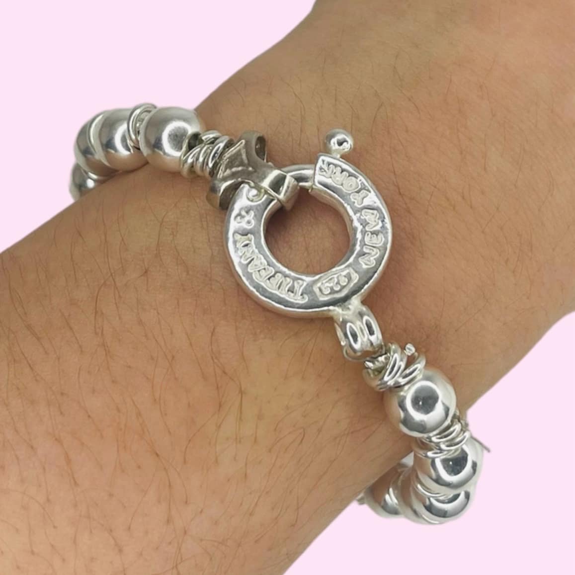 » Pulsera Bolitas 8mm con tanza cierre tiffany Plata 925